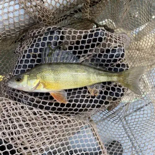 Yellow perch are most abundant in natural lakes in Iowa, much like Okoboji Lake, because they prefer clear, cool waters. This species is known for its golden yellow to greenish body covered in 6 – 8 dark vertical bars. These fish have yellow or green eyes and orange-red tinted fins.